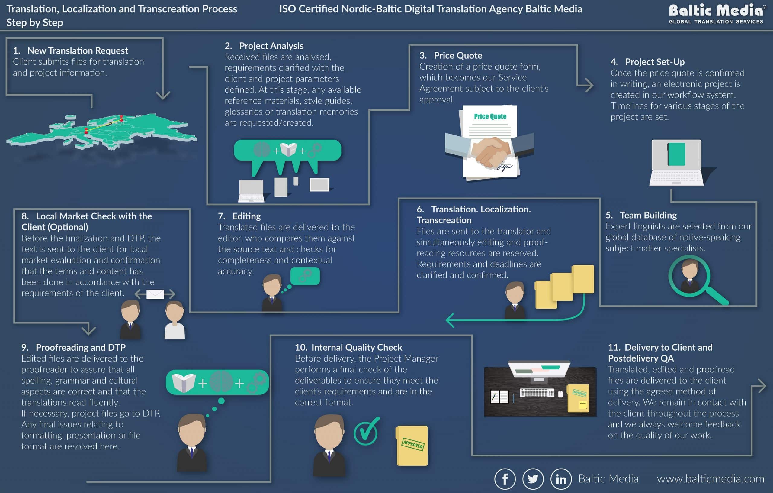 Translation, Localization and Transcreation Process Step by Step in the Baltic Media® Nordic-Baltic Translation agency